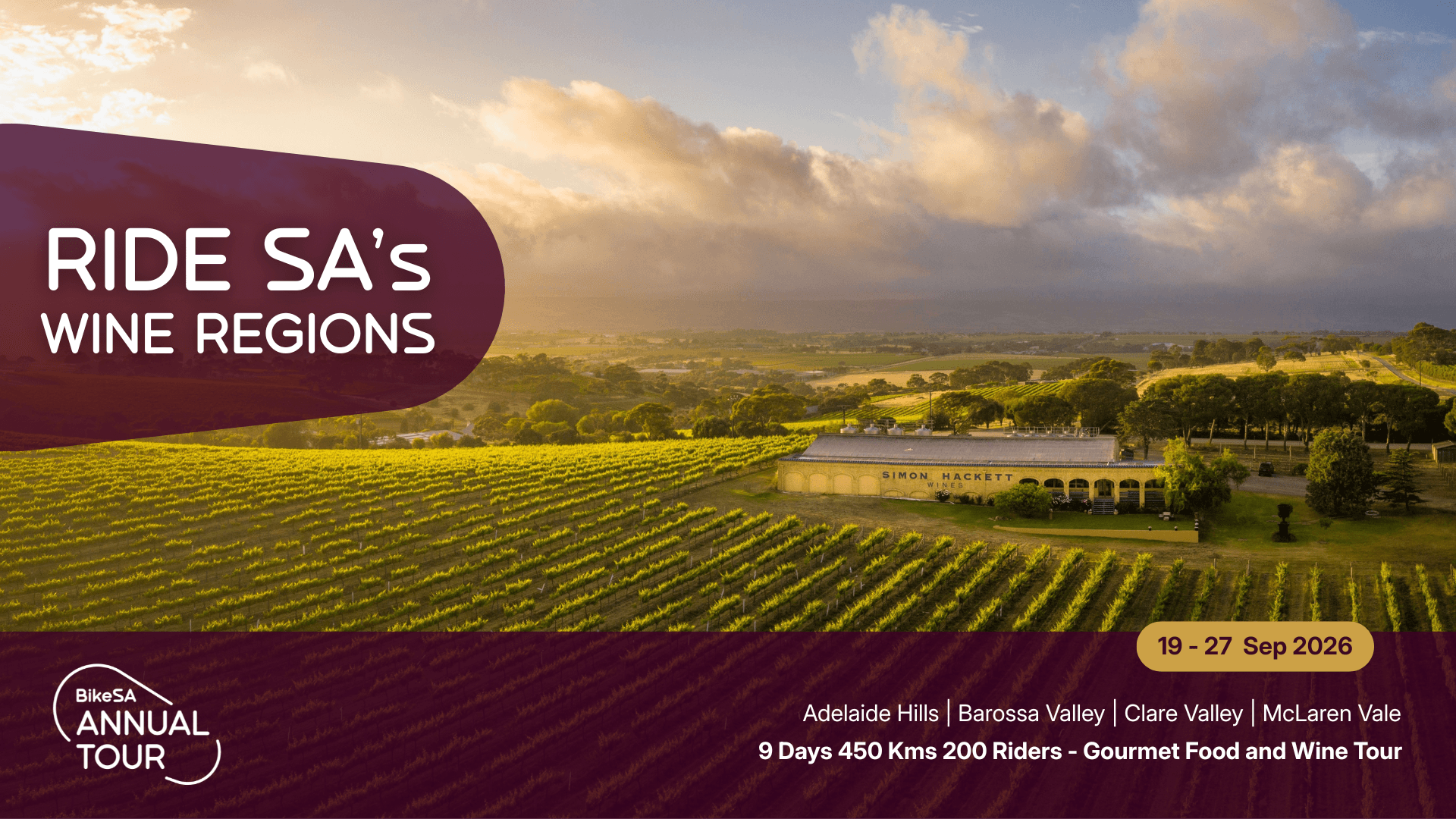 A 9-day fully supported cycling tour that covers several hundred kilometres. It gives riders a chance to explore regional South Australia by bike, combining travel, sightseeing and endurance riding.