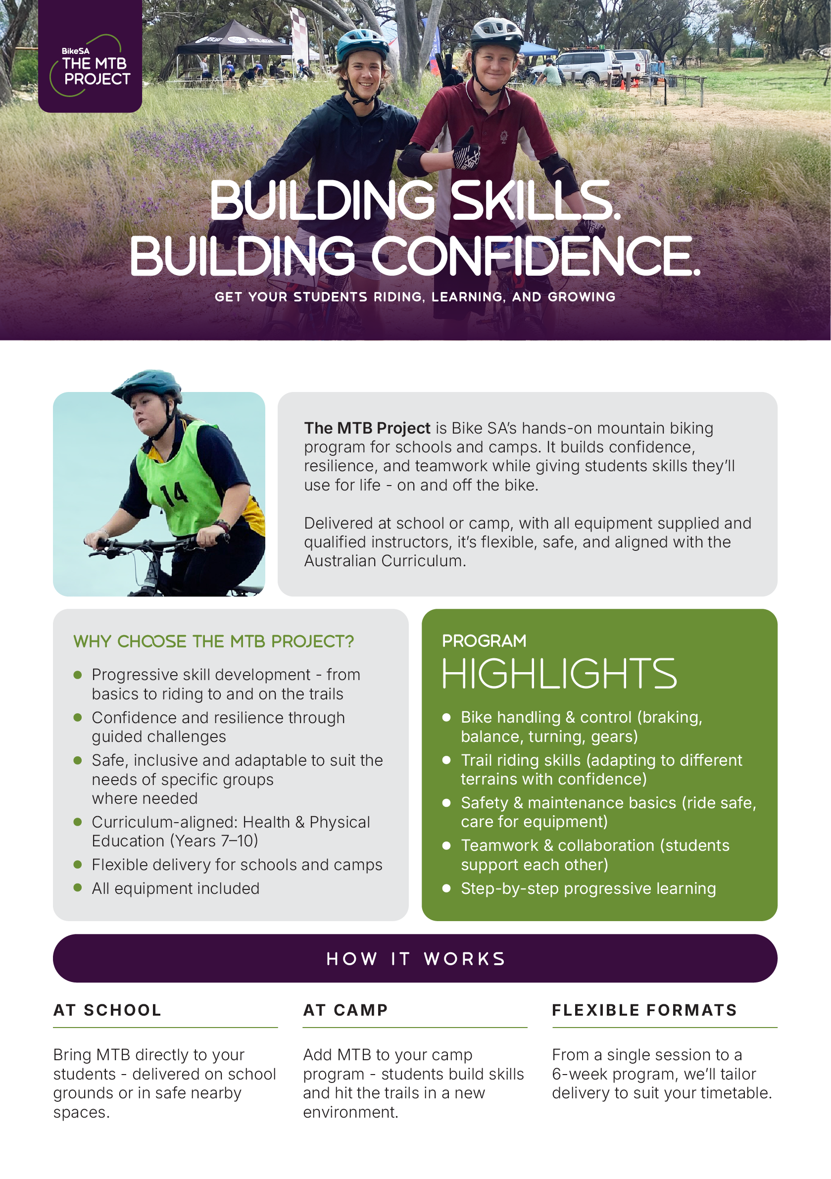 Bring MTB directly to your students - delivered on school grounds or in safe nearby spaces.
